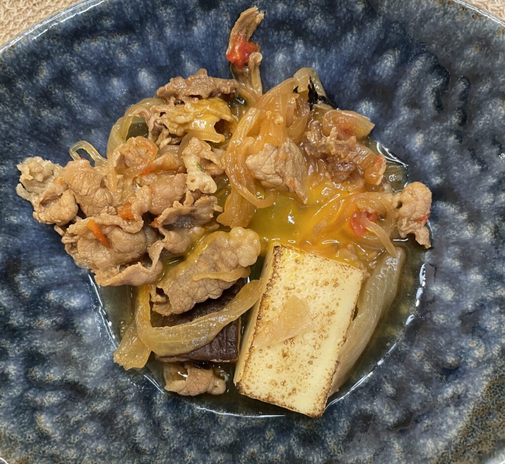 トマト仕立てのすき焼きは少し濃いめな味付けでした。