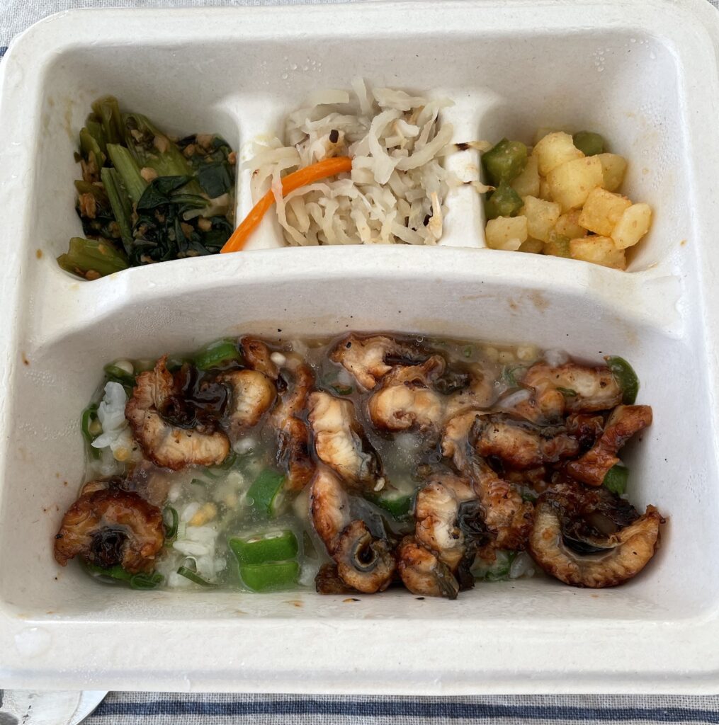角煮はほんとに柔らかくて美味しかったです。丁度いいお肉の量が入っています。これには筍の炊き込みご飯が入っていました。