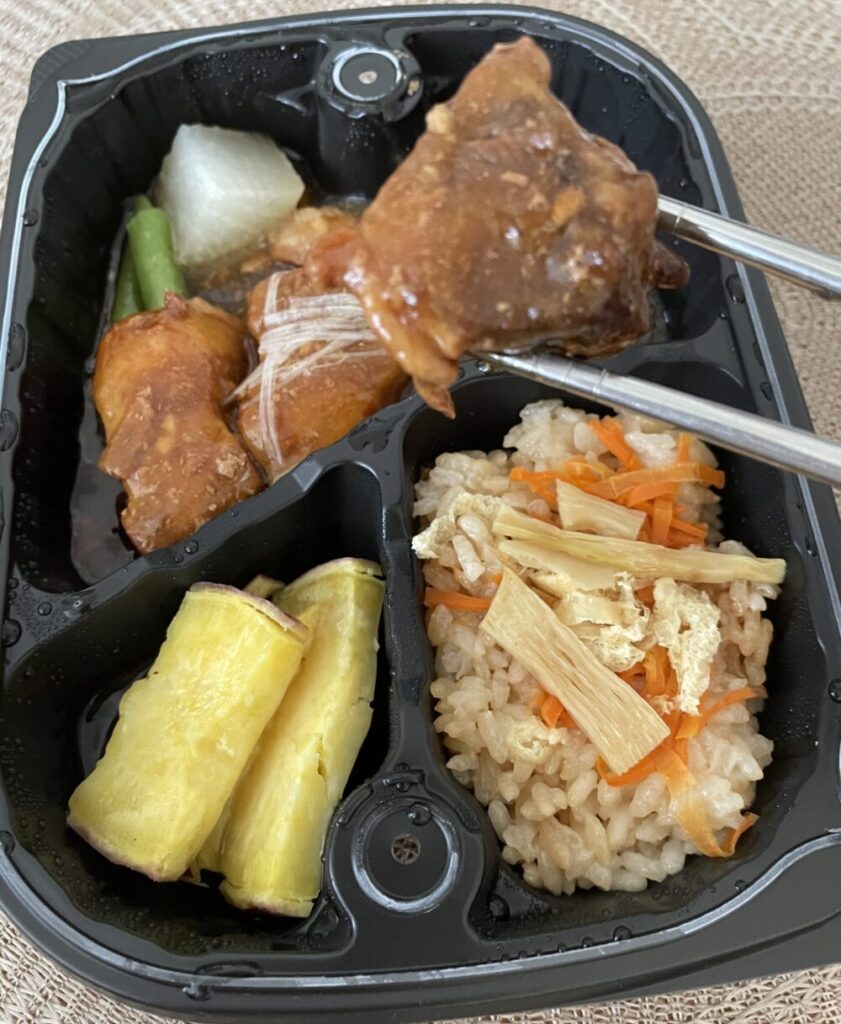 Mealsミールズのお弁当はとても家庭的で、例えばポークチャップは家で使う普通のケチャップの味とか大根とちくわの煮物の味付けも普段の家庭の知っているお料理の”味”がします。うちのごはんの美味しさです。
